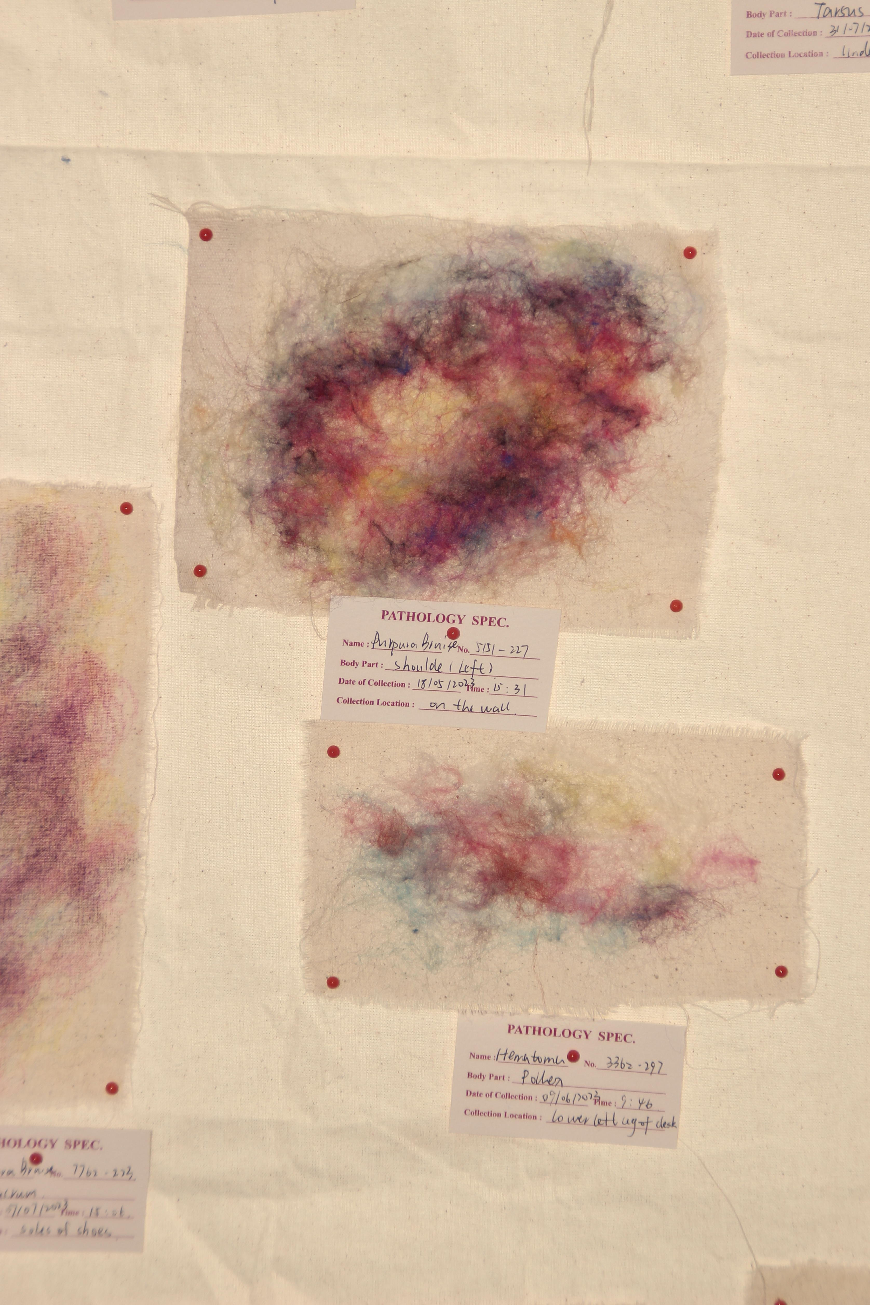I wanted to use physical traces of intimacy to represent a kind of unguarded honesty. Studies have shown that women are more prone to bruising than men because women's skin is more delicate and sensitive, just like their emotions.